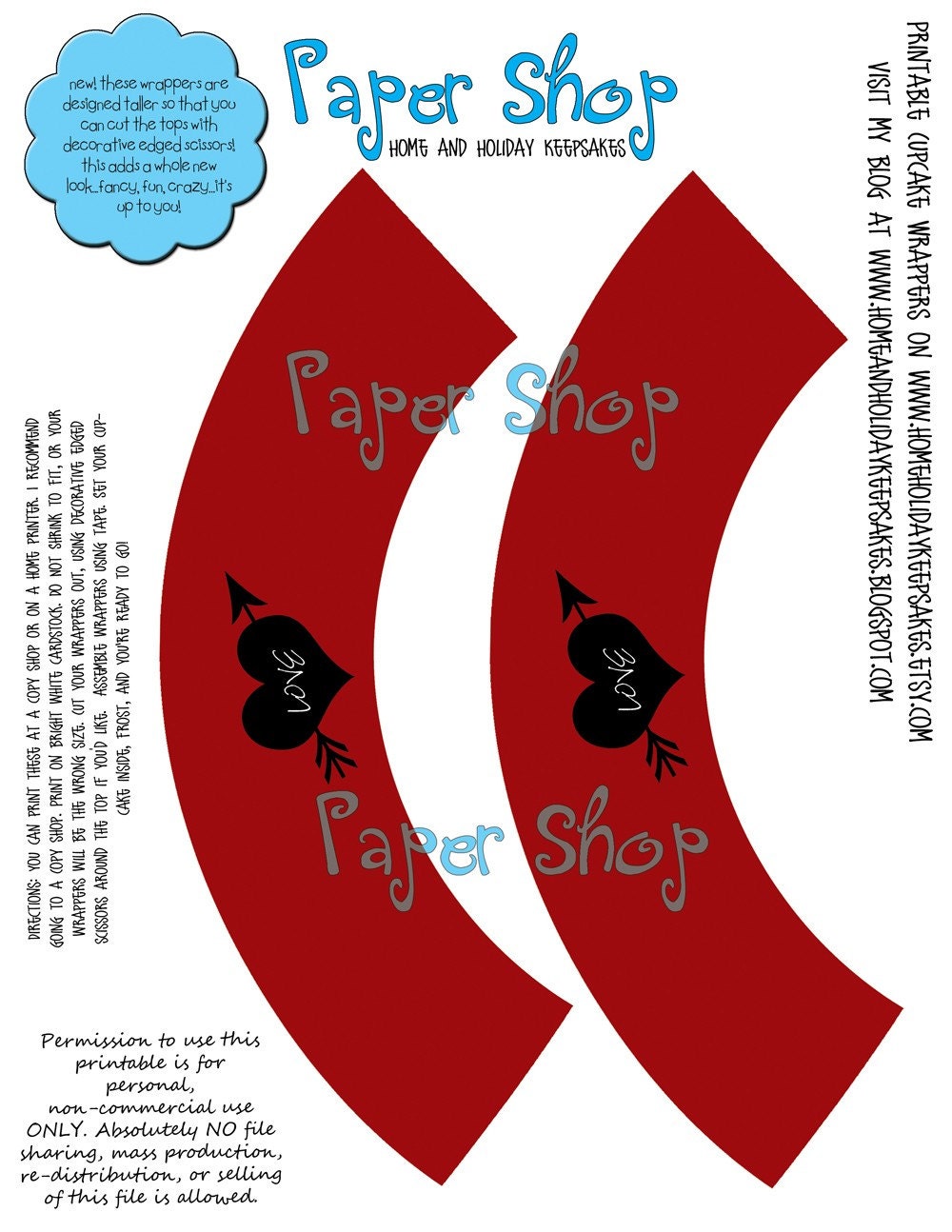 Cupid's Arrow Valentine Printable Cupcake Wrappers..NEW..designed for use with decorative edged scissors